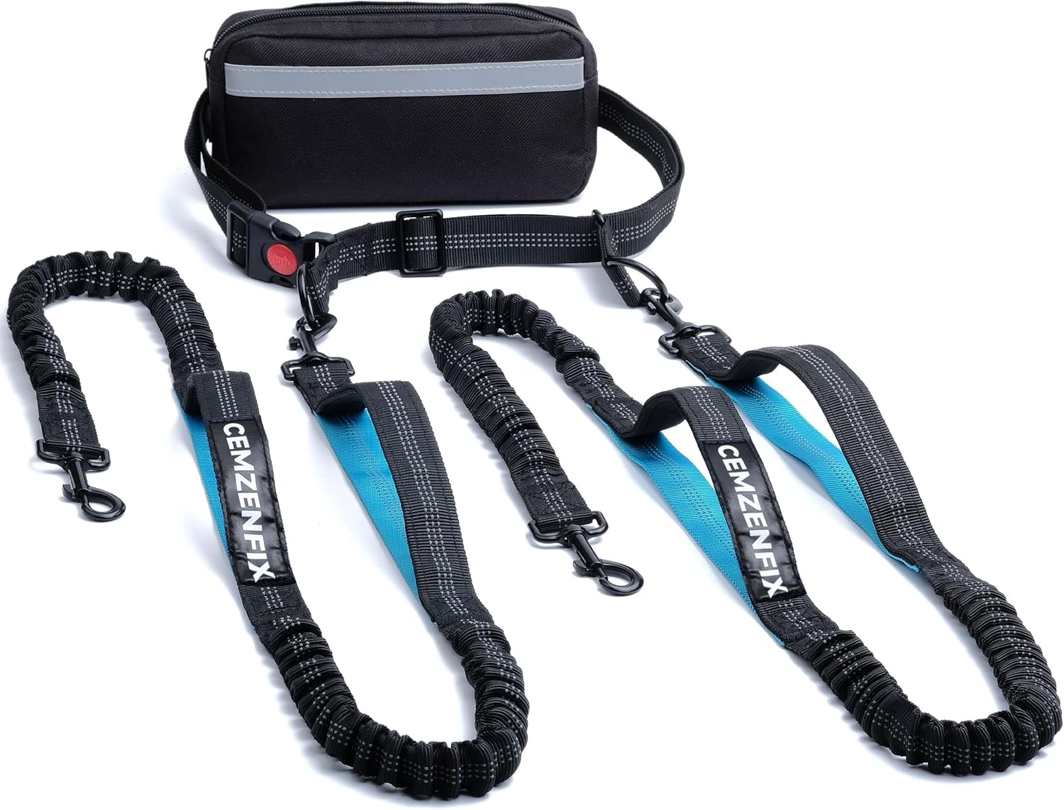 Hands Free Dog Leash for 2 Dogs – Waist Leash for Dog Walking with Dual Bungee, Reflective No Pull Design, Adjustable Belt & Pouch for Running, Hiking, Jogging