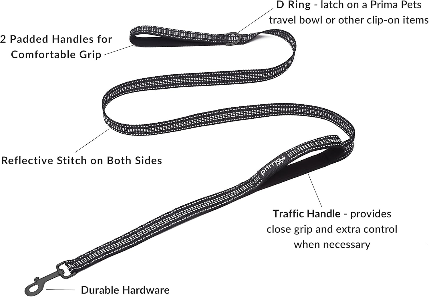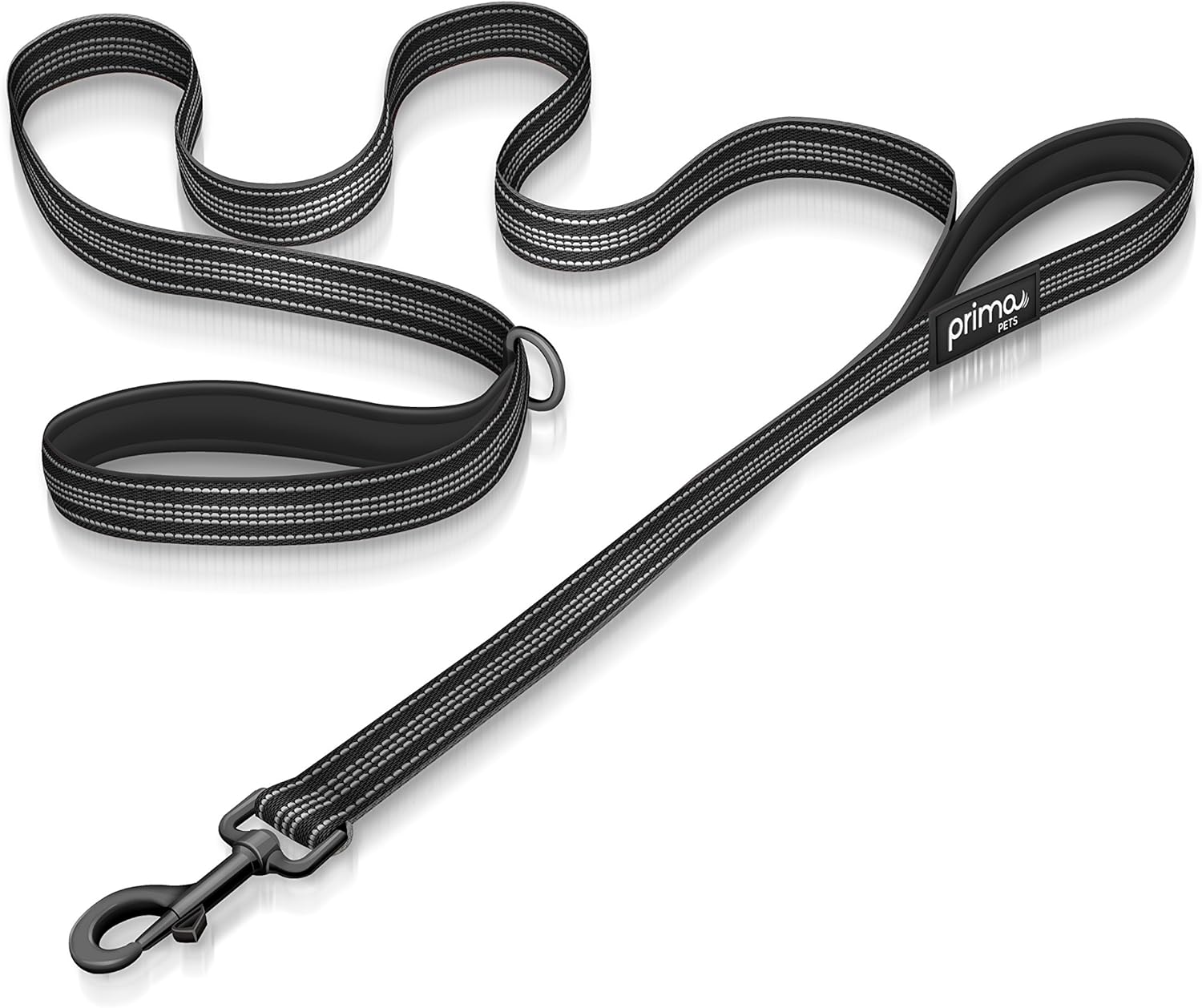 TwoEar 6FT 1IN Strong Black Dog Leash with 2 Padded Handles, Traffic Handle Extra Control, Comfortable Soft Dual Handle, Auto Lock Hook, Reflective Walking Lead for Small Medium and Large Dogs