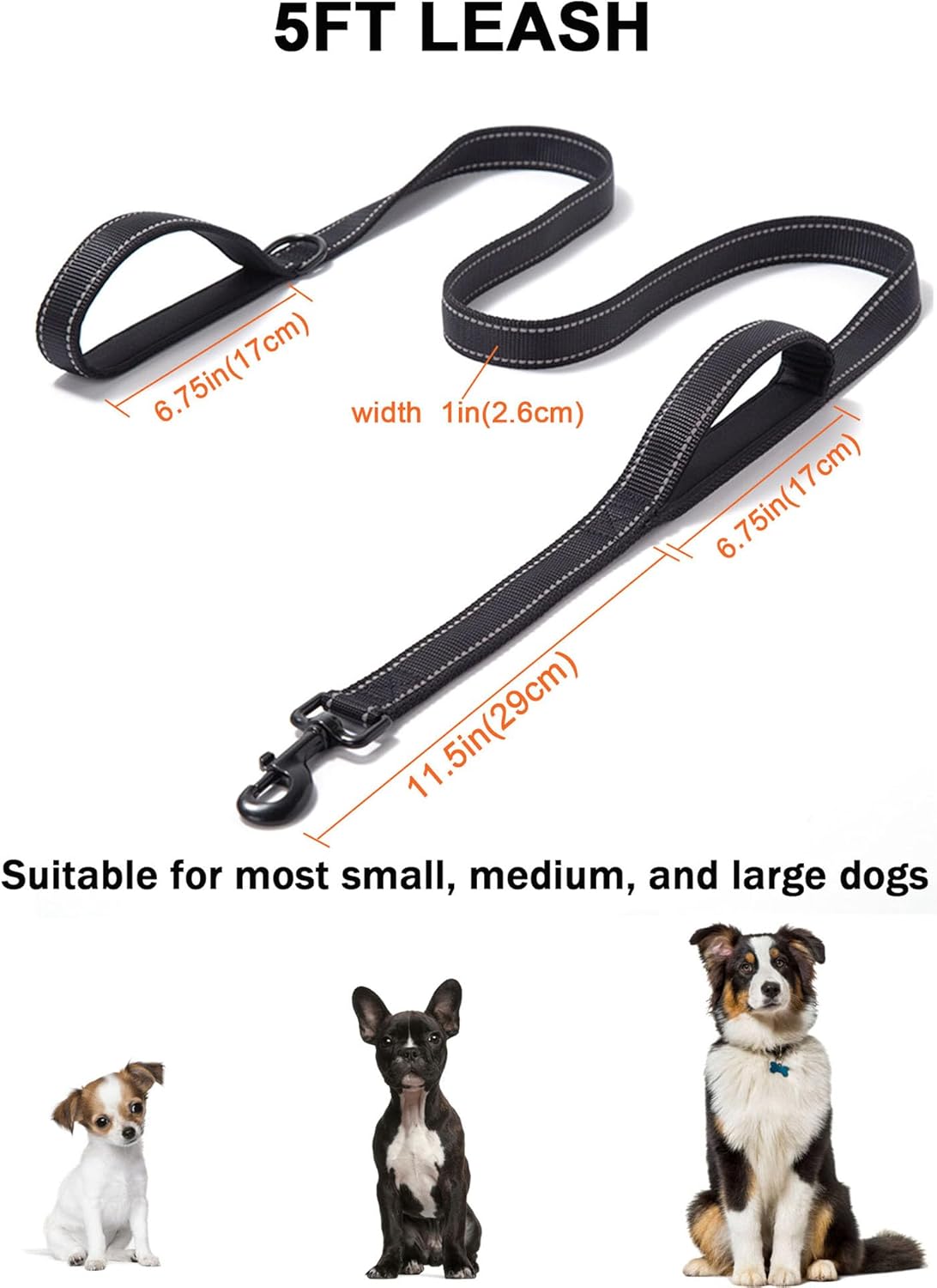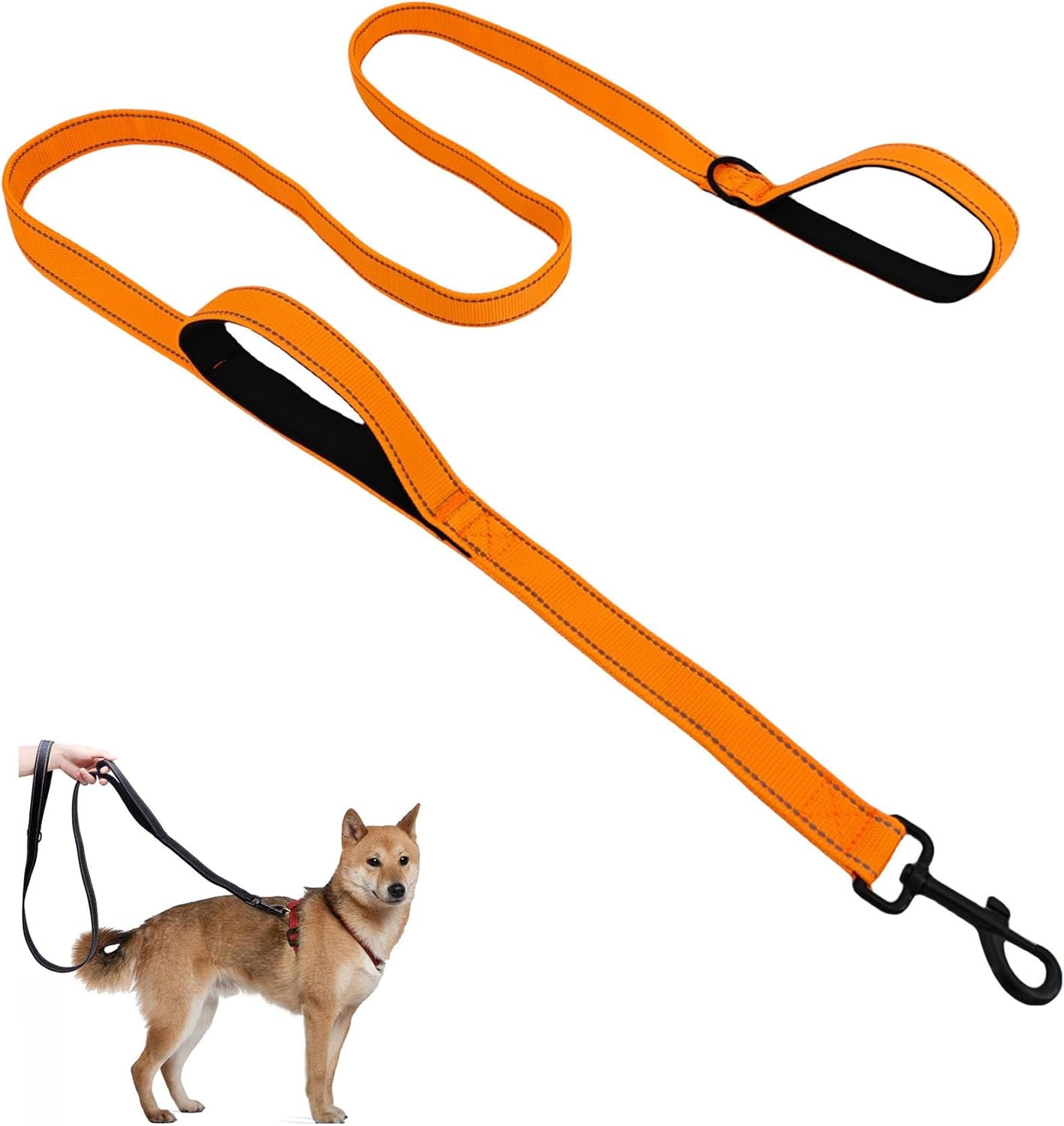 Aeclleca Soft Handle Reflective Black Dog Leash with 2 Padded Handles, 5FT Heavy Duty Pet Lead for Medium & Large Dogs, Comfortable Anti-Slip Grip & Night Safety Design (Black)