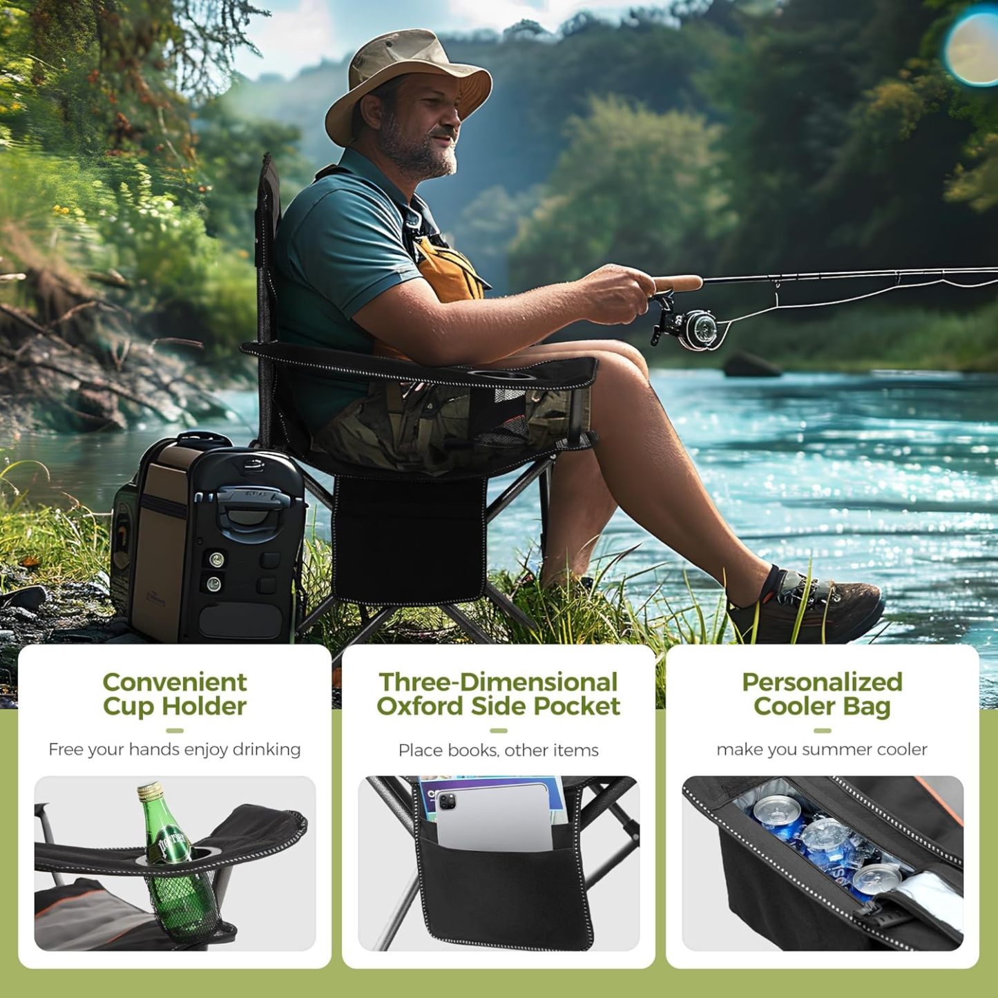 ALPHA CAMP Heavy Duty Camping Chair 500LBS Capacity, Oversized Folding Chair for Heavy People, Padded Portable Outdoor Chair with Cooler Bag & Cup Holder for Camping, Fishing, Beach