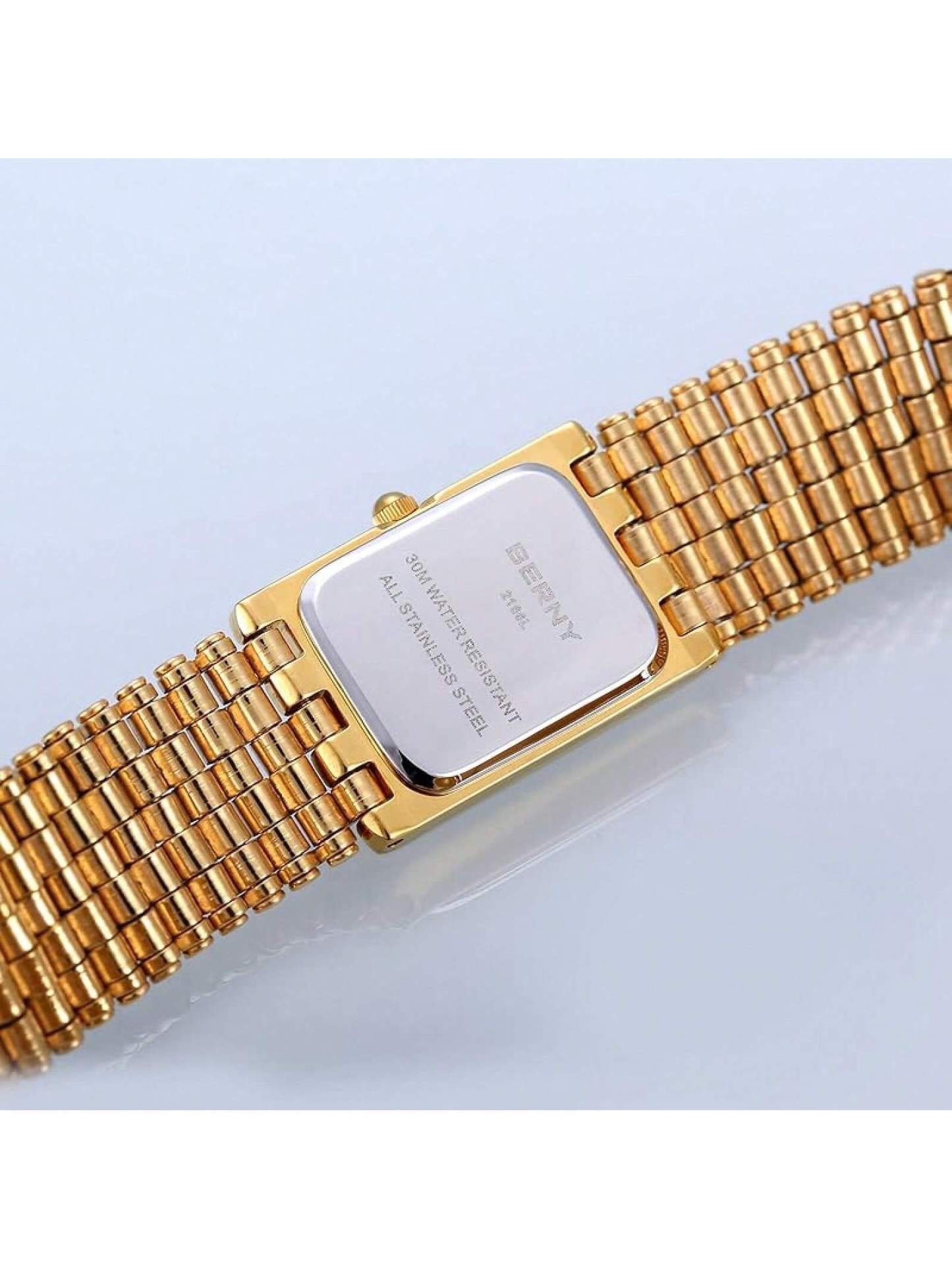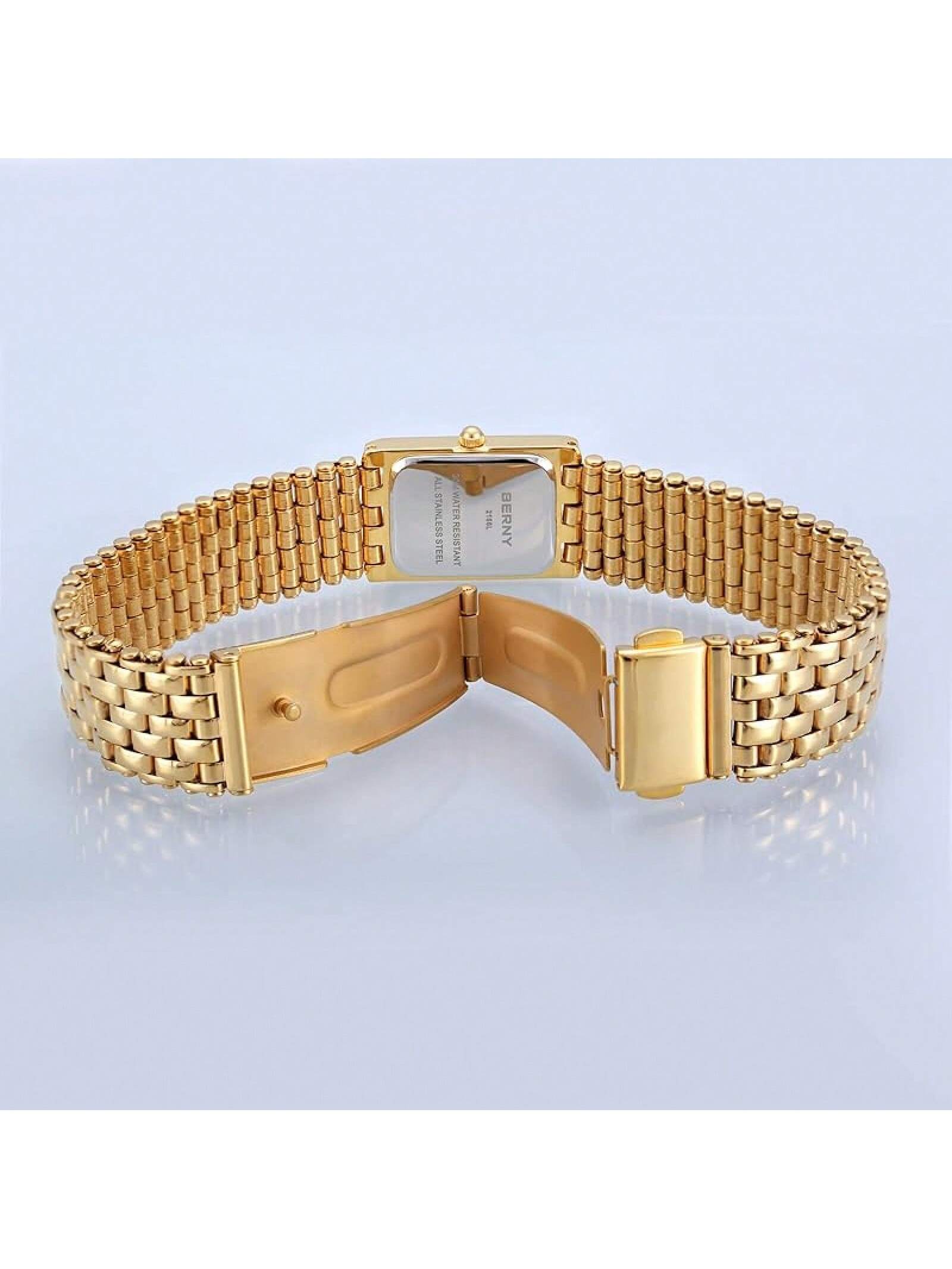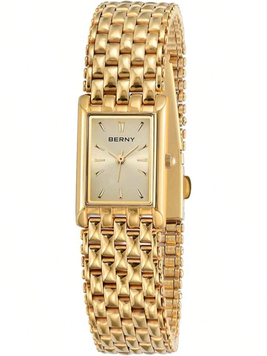 BERNY Gold Watches Women Updated Ladies Quartz Wrist Watches Stainless Steel Band Womens Small Gold Watch Luxury Casual Fashion Bracelet Tools Included