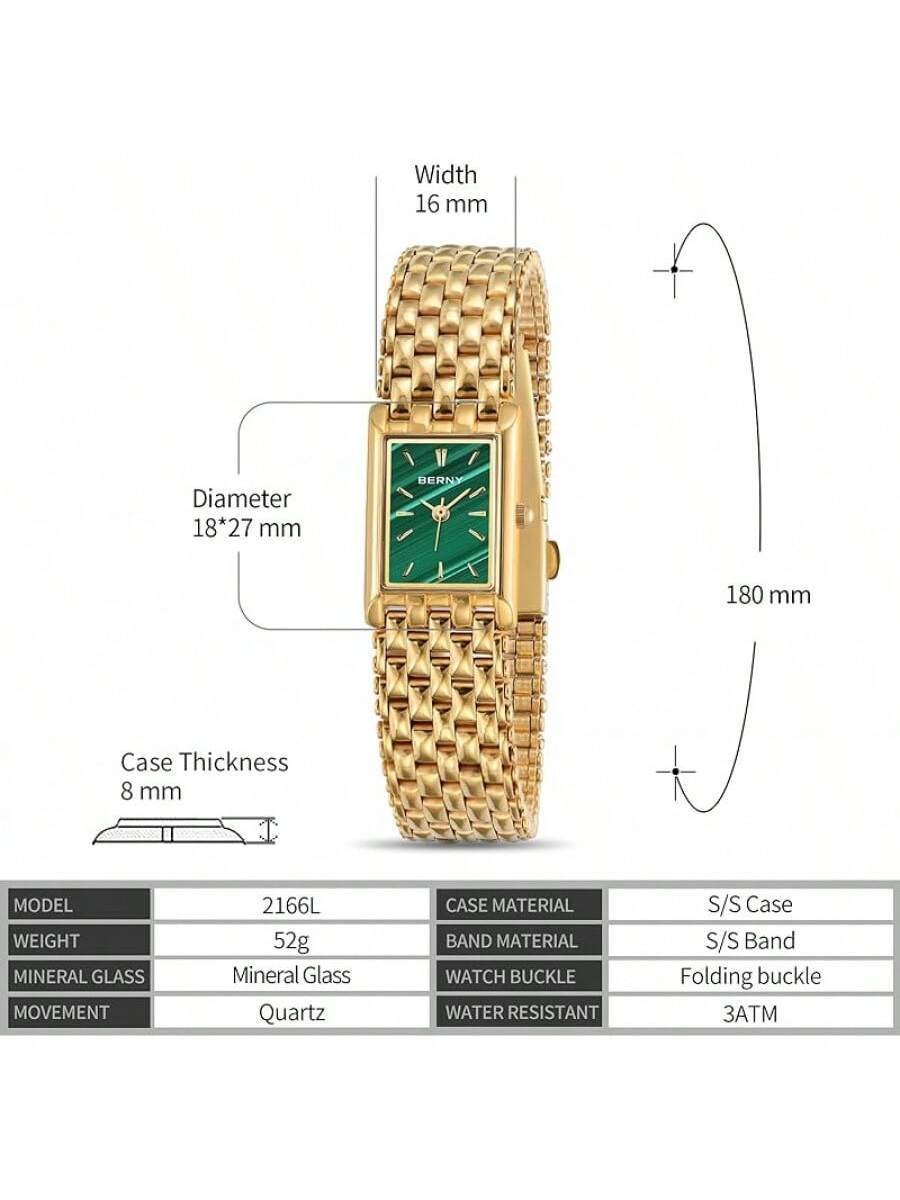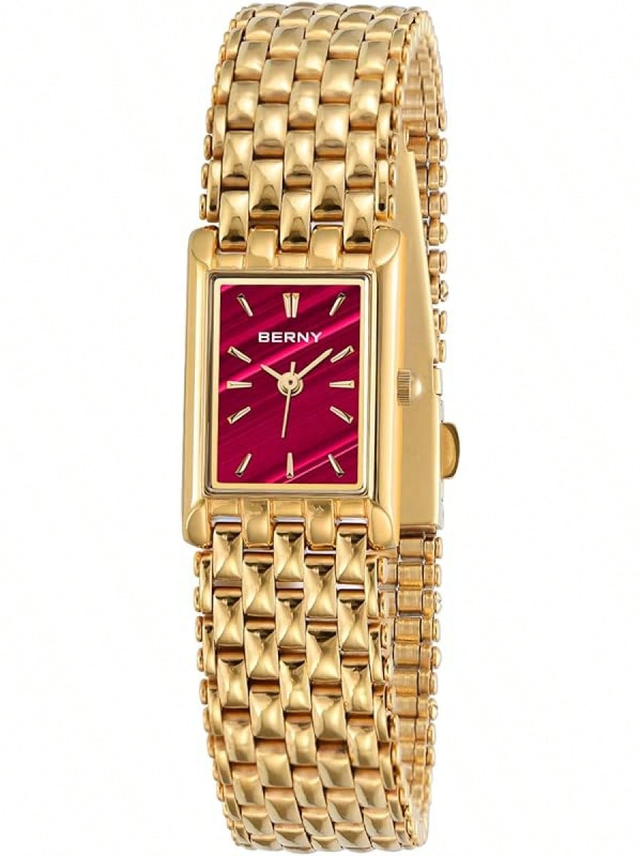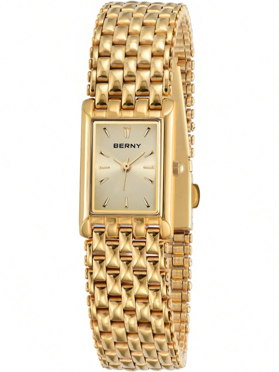 BERNY Gold Watches Women Updated Ladies Quartz Wrist Watches Stainless Steel Band Womens Small Gold Watch Luxury Casual Fashion Bracelet Tools Included