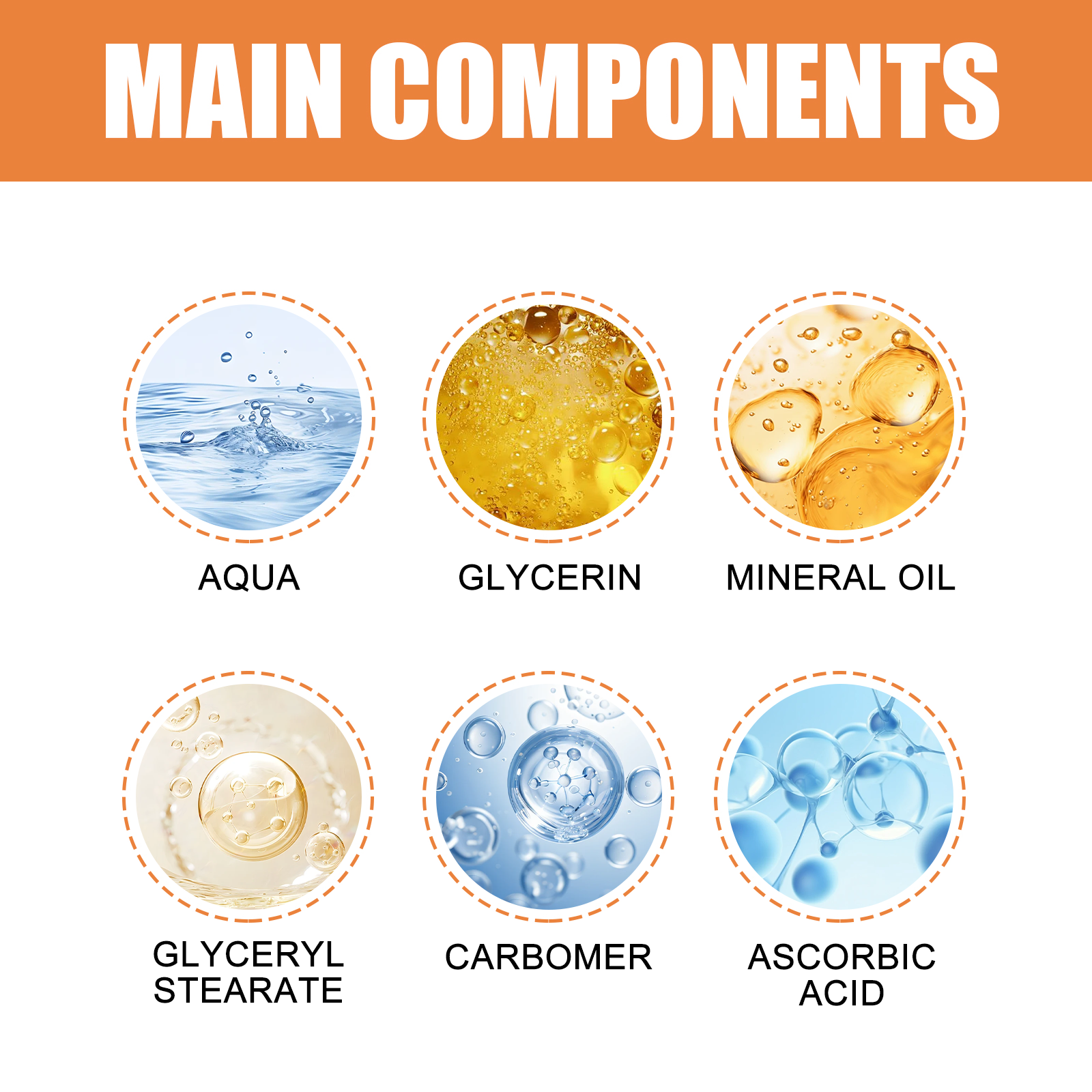 Our Vitamin C eye cream stick contains glyceryl stearate, carbomer, and ascorbic acid (vitamin C). It nourishes and protects the eye area, moisturizes and brightens the skin around the eyes, and reduces dark circles. Its usage is very simple: after cleansing and toning, open the bottom of the eye cream stick, gently apply it to the skin around the eyes, and use your fingertips to massage it inwards and outwards for absorption. Provides more stable care, making the skin brighter and firmer, and reducing eye circles and puffiness.