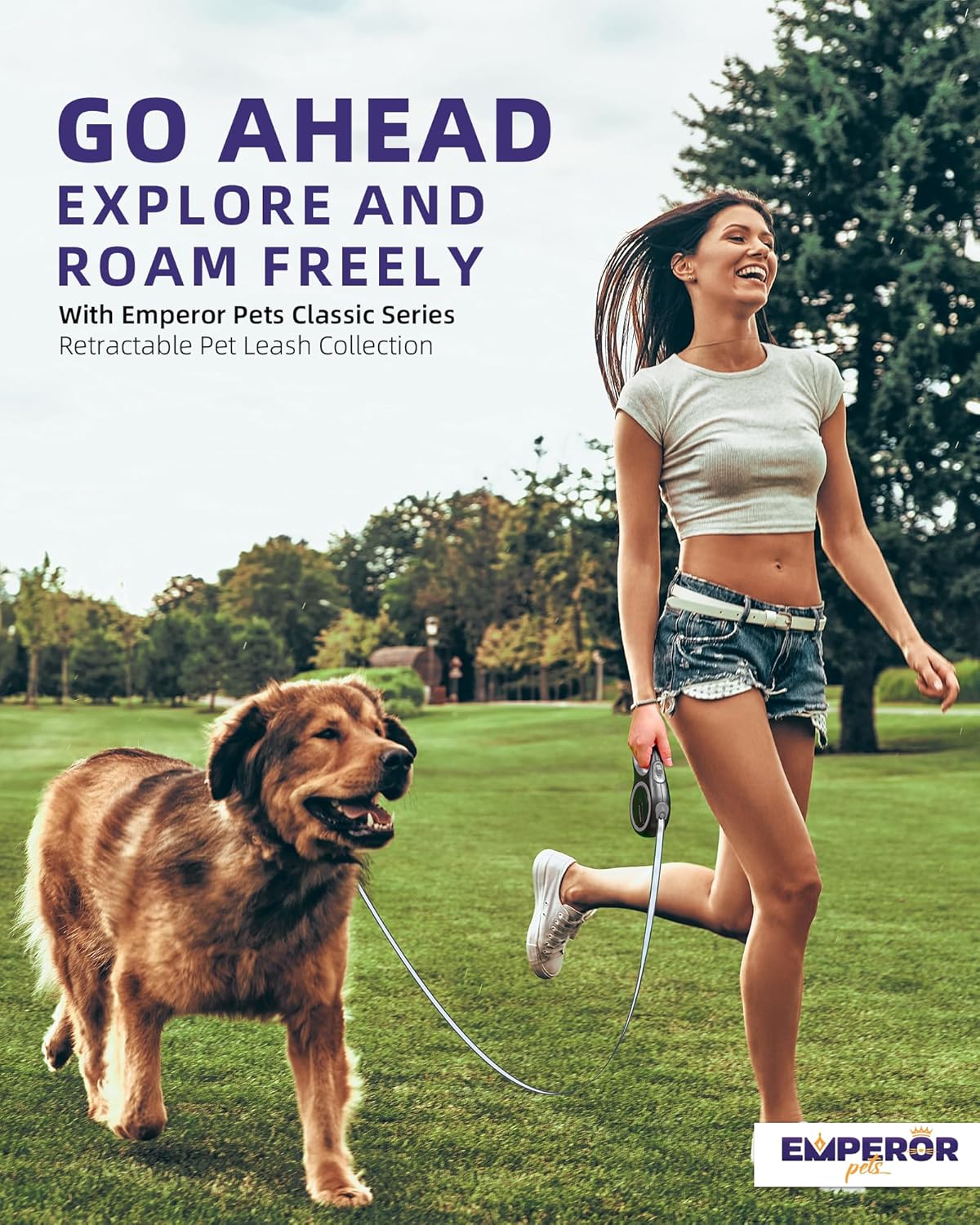Emperor Pets 26 ft Retractable Dog Leash - Heavy Duty Retractable Pet Leash with Anti-Slip Grip - Reflective Dog Leash Tape for Medium to Large Dogs up to 100 lbs -GY26