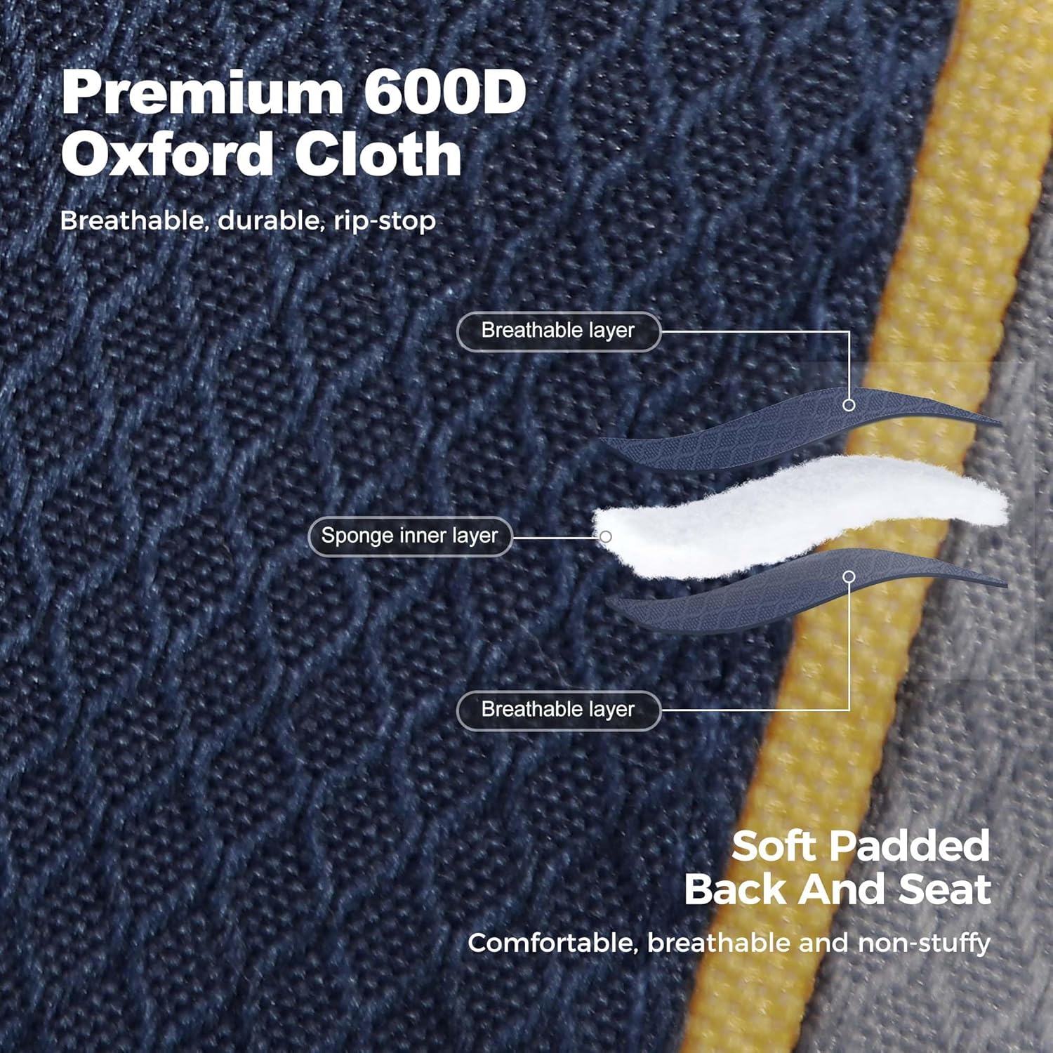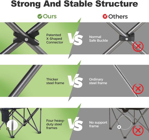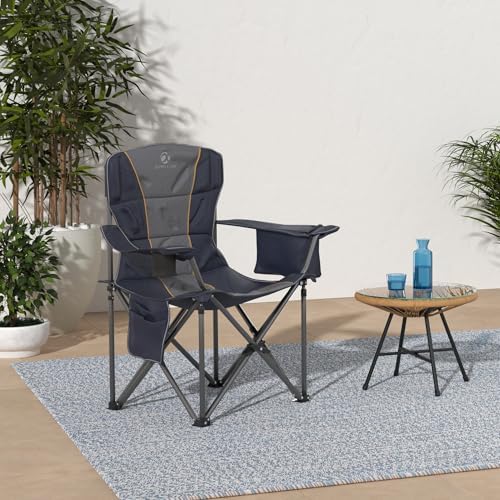 LET'S CAMP Folding Camping Chair Oversized Heavy Duty Padded Outdoor Chair with Cup Holder Storage and Cooler Bag, 450 LBS Weight Capacity, Thicken 600D Oxford,2 Pack