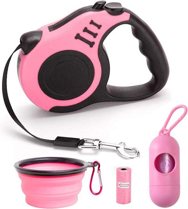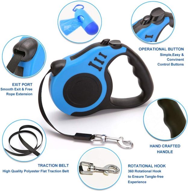 Retractable Dog Leash for Medium & Small Dogs & Cats - 16.5FT Tangle Free Heavy Duty Walking Leash with Anti Slip Handle, Pause & Lock Strong Nylon Tape, Blue