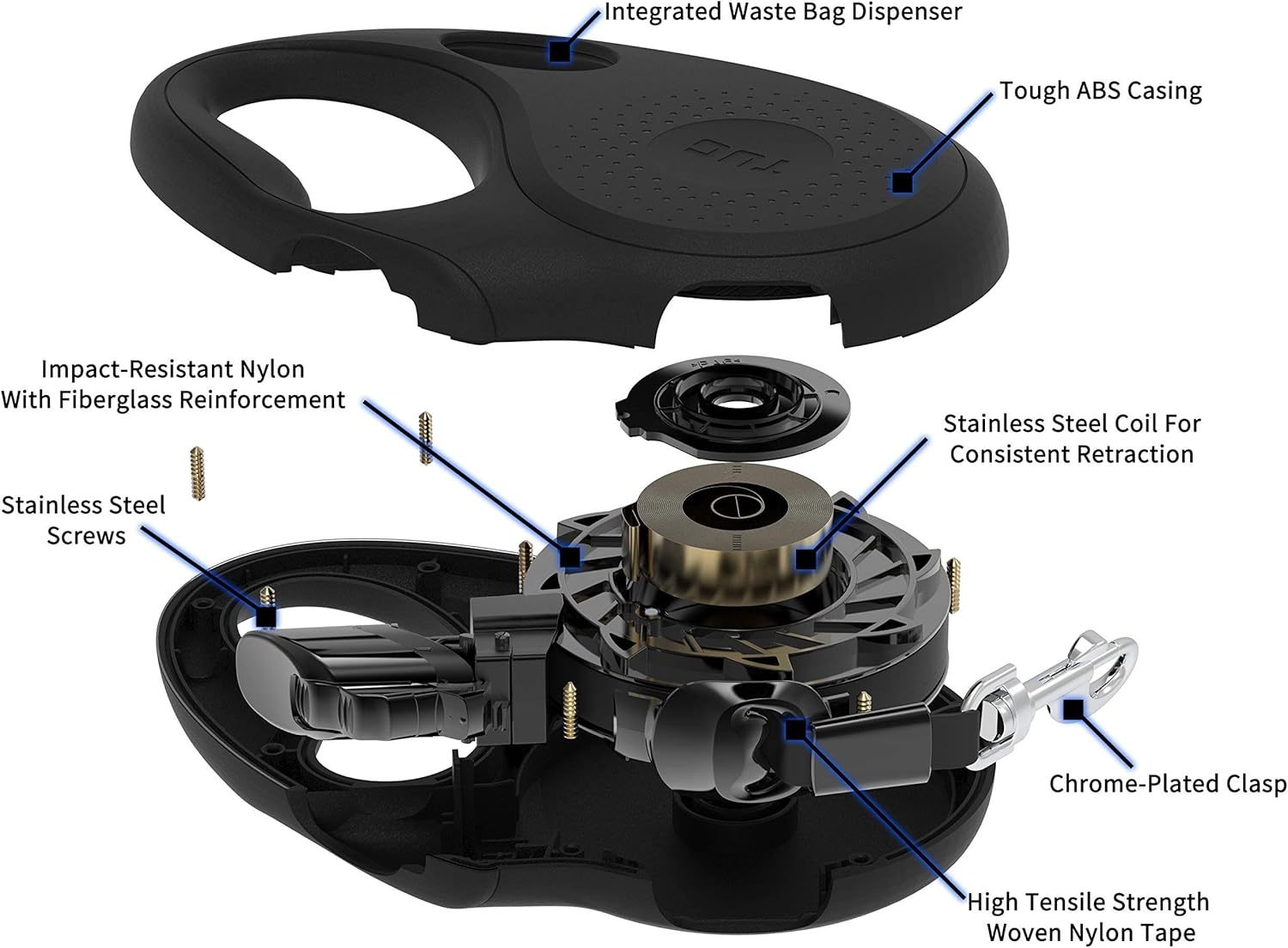 TUG Oval 360° Tangle-Free Retractable Dog Leash with Integrated Waste Bag Dispenser (Small, Black)